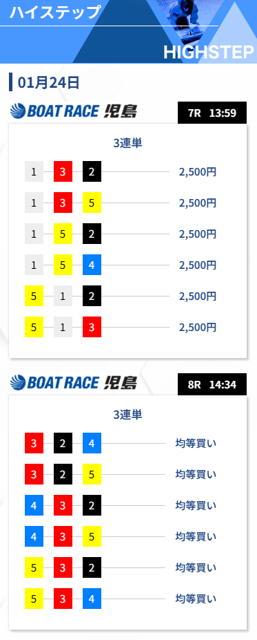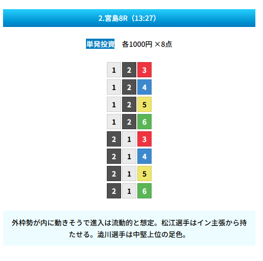 | レース : 児島7R➡児島8R |