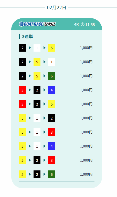 | レース : 若松10R ➡ 若松12R |