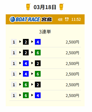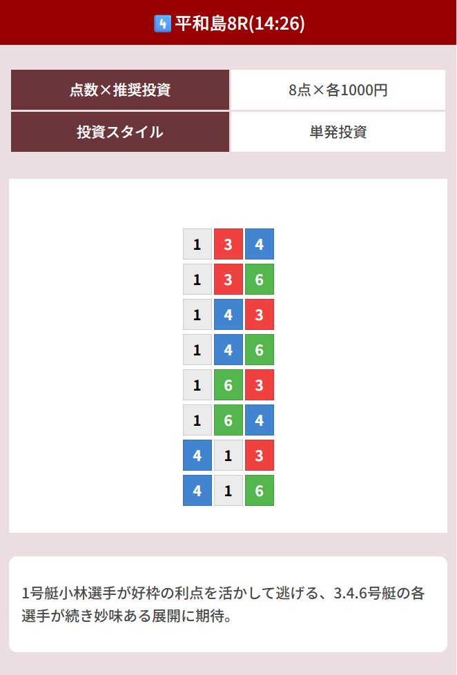 | レース : びわこ8R ➡ 平和島10R |