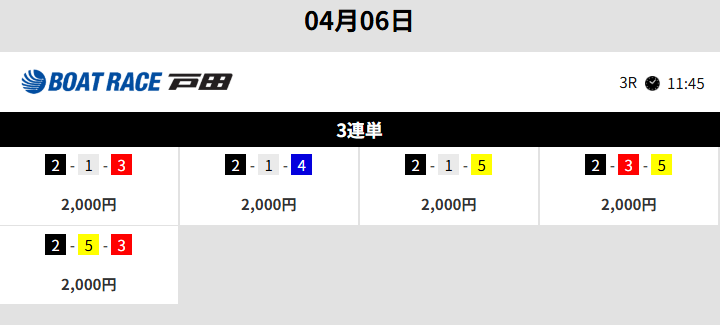 | レース : 平和島 7R ➡ 戸田 9R |