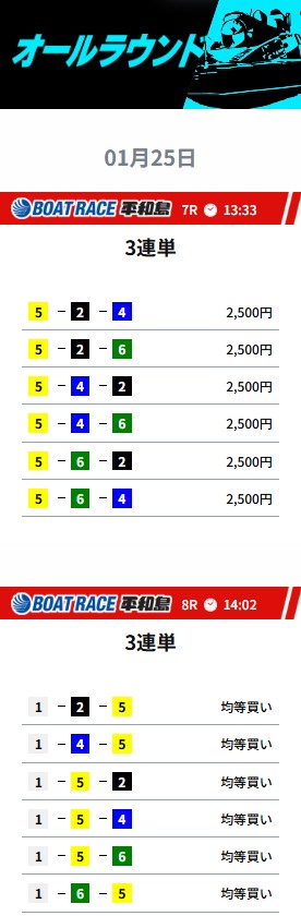 平和島7R 562 55.4倍平和島8R 125 35.0倍 - 2026-01-17 スマッシュ 638,040円