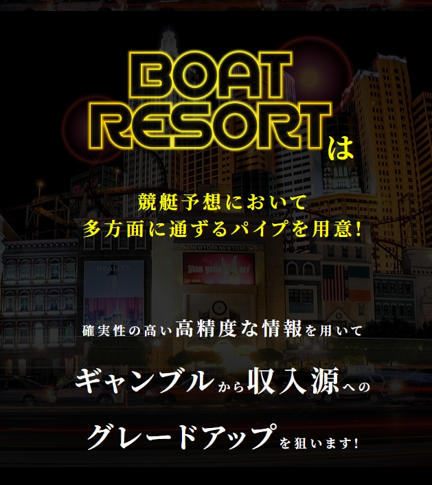 競艇王子どちらも全く具体性がなく、本当にそのような情報網があるのか怪しく感じます。このように、情報精査方法について具体的に説明されていない予想サイトは、もれなく悪徳サイトです。このボートリゾートも、悪徳サイトと判断できます。