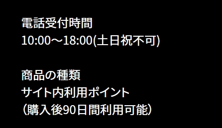 | 商品の種類 | サイト内利用ポイント (購入後90日間利用可能) |