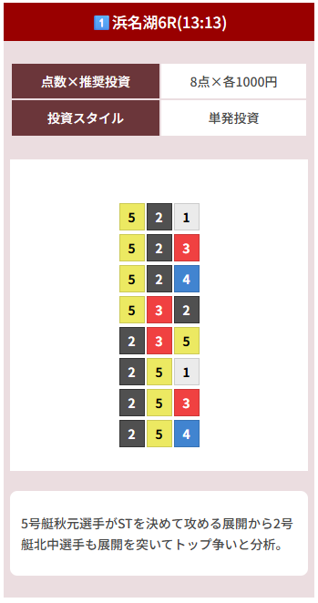 | 特徴 | 1号艇にA級選手が入り残り5名がB級で番組が組まれます。 |