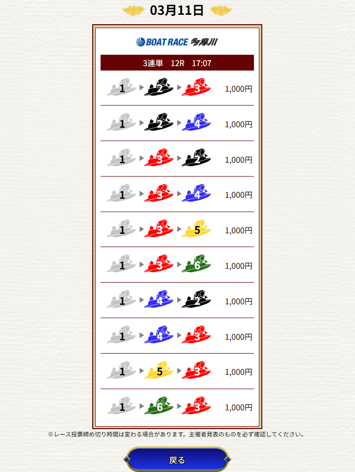| 2026/01/08 | ![]() | 丸亀5R | 642 | 68.7倍 | 不的中 |