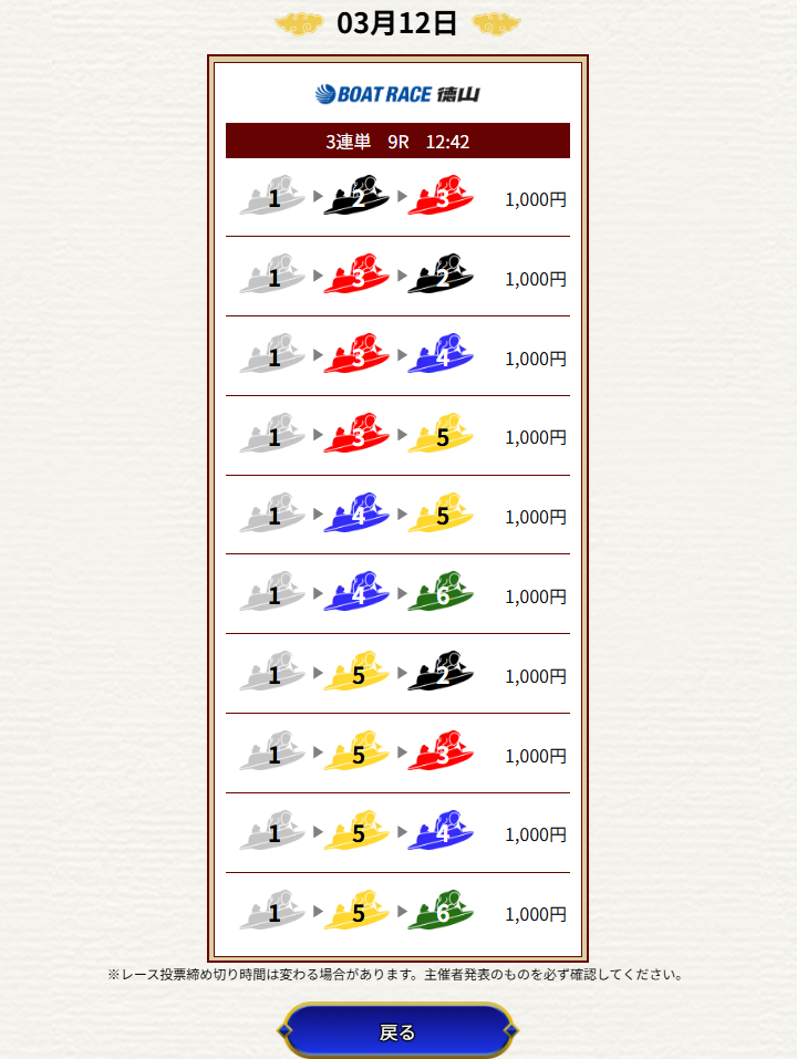 | 2025/12/16 | ![]() | 徳山10R | 125 | 21.2倍 | 212% |