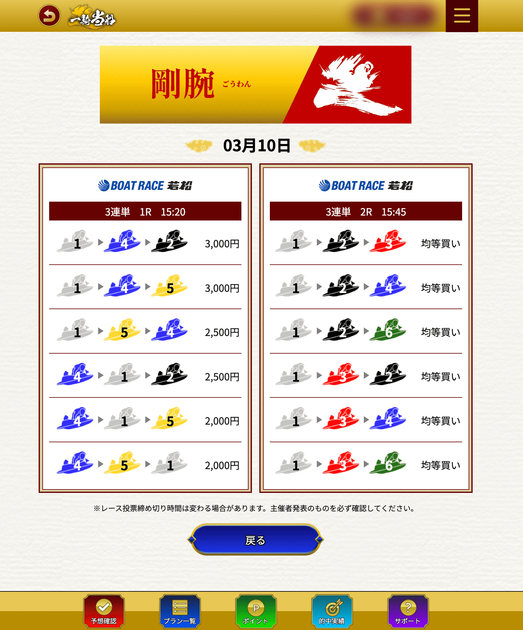 「鉄壁」プランは、ちょうど中間にあたるプランで、2レースコロガシで50万円の獲得を目指すものです。参加費用は5万円です。