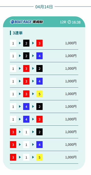 | 2026/04/14 | ![]() | 平和島12R | 143 | 18.7倍 | 187% |