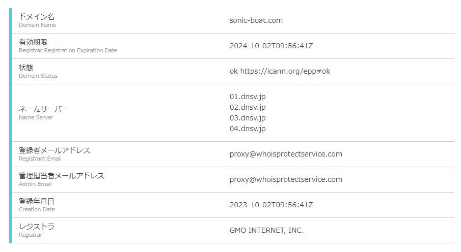 競艇王子ONSOKUのドメイン「sonic-boat.com」が登録されたのは2023年10月2日です。本記事執筆時点で3ヶ月も経過していません。