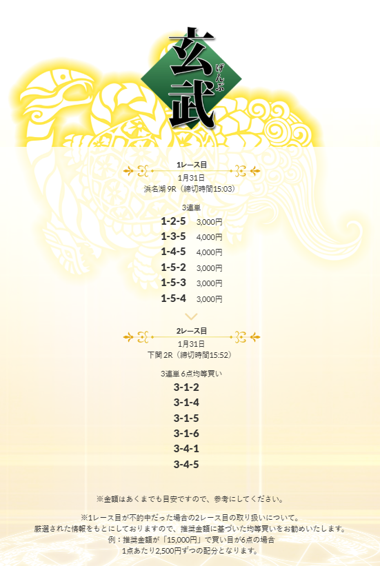 青龍プランは、4万5000円で参加できるミドルクラスのプランです。2レースで30万~80万円の払い戻しを狙います。