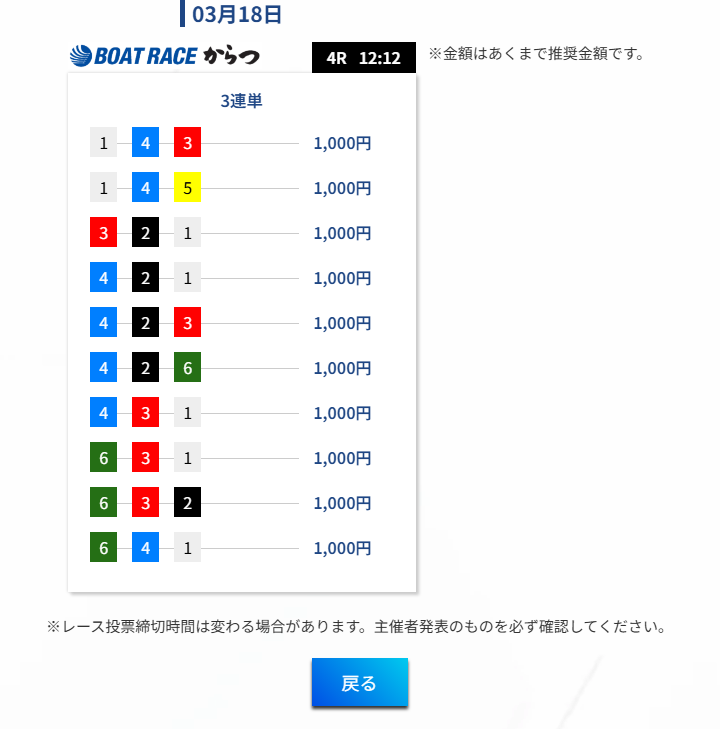- 「UPBOAT(アップボート)」の無料予想は各買い目に金額を割り当て