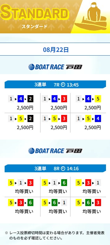 | 2025/08/24 | ![]() | とこなめ4R | 142 | 20.7倍 | 311% |