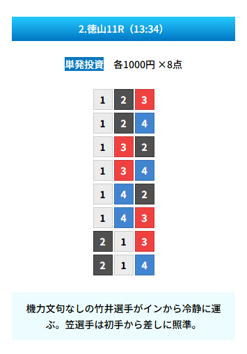 競馬のサイト何個か登録してたけど買い目が本当に多くて資金続かなくてすぐやめてしまった。ここは点数絞ってるのにそれなりに的中も出来て最高ですね。自分にはボートのほうが合ってるのかも。