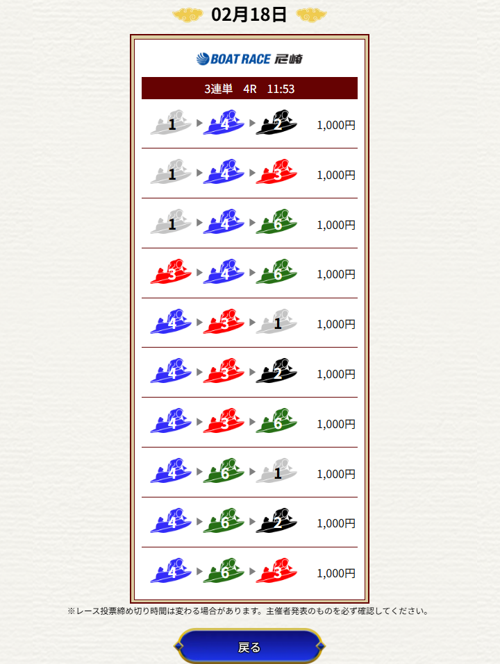 | 2026/02/18 | ![]() | 尼崎4R | 143 | 20.8倍 | 208% |