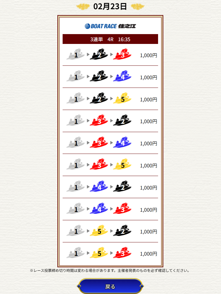 | 2026/02/23 | ![]() | 住之江4R | 123 | 7.2倍 | 72% |