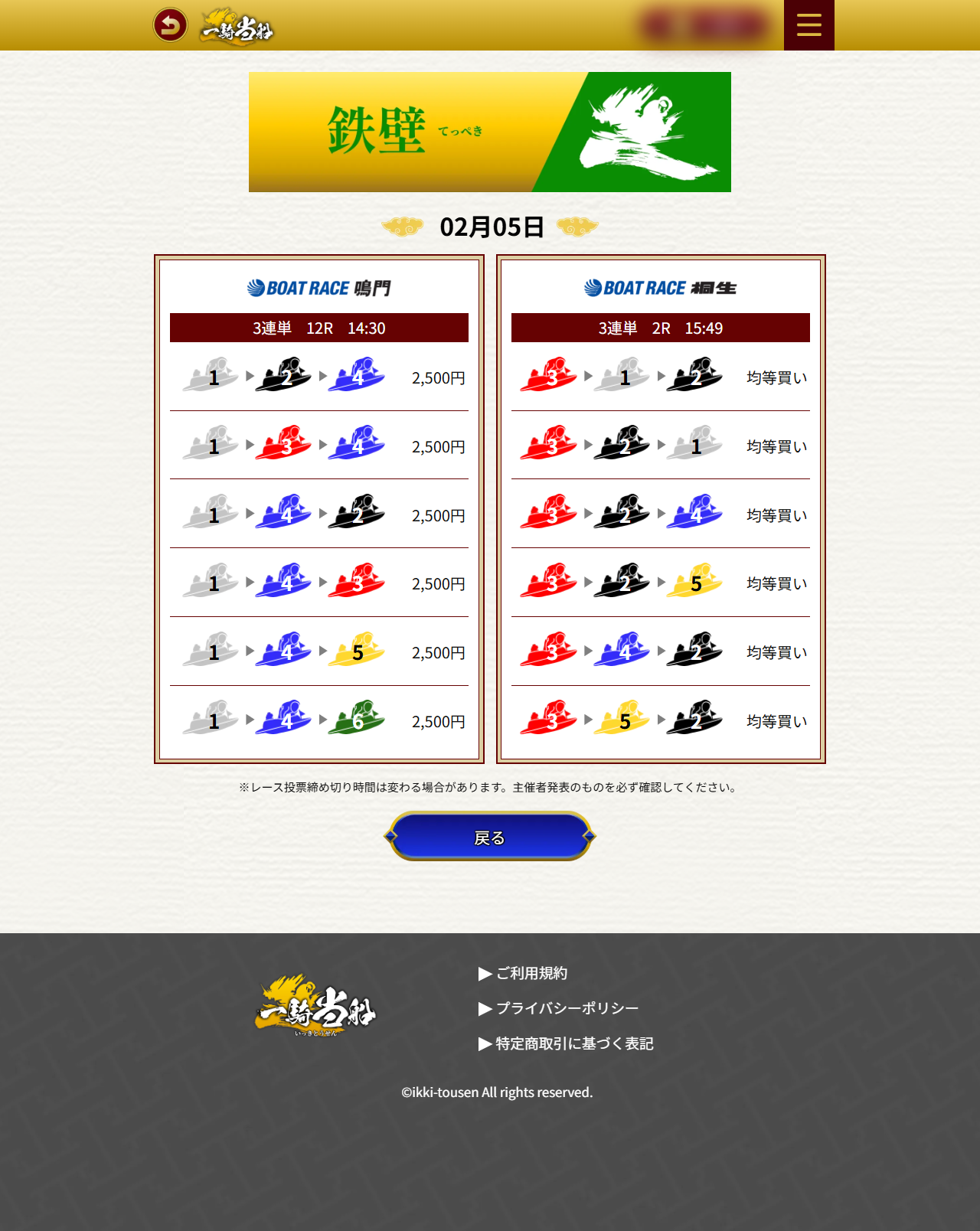 芦屋 11R 132 17.7倍鳴門 12R 156 56.2倍 - 2026-01-23 鉄壁 709,770円