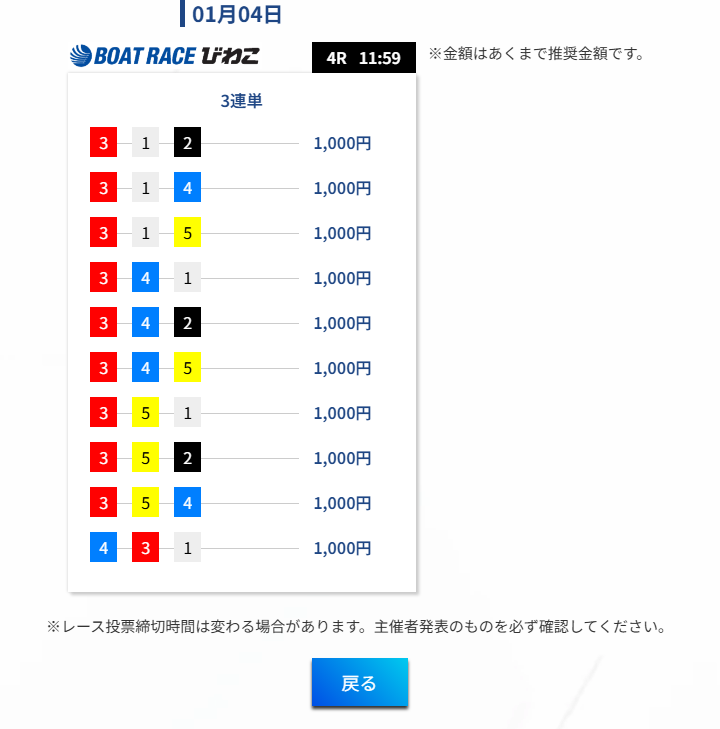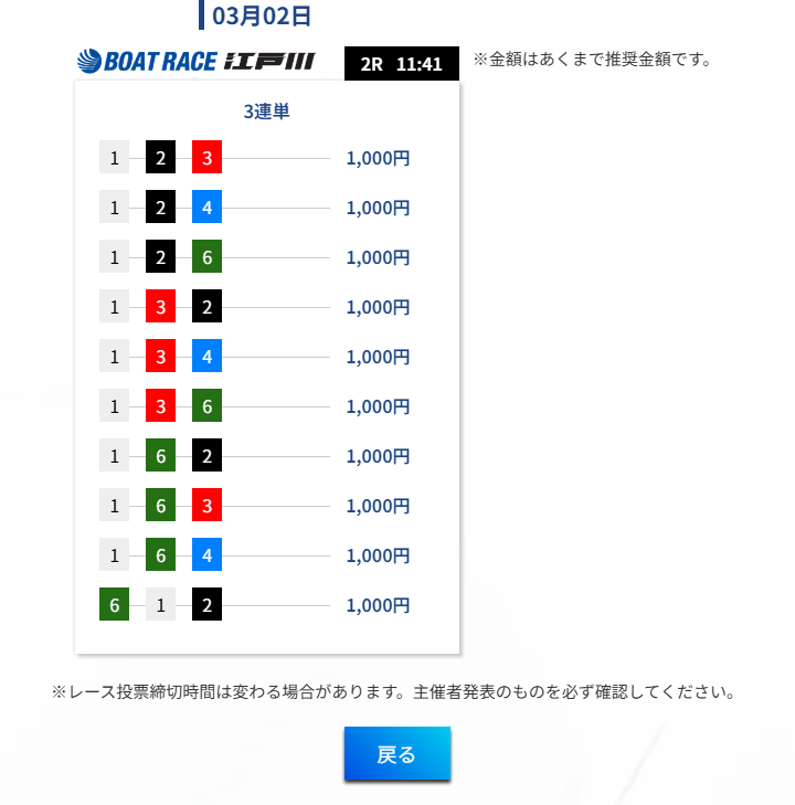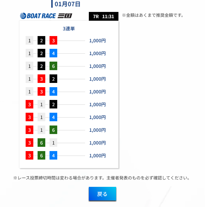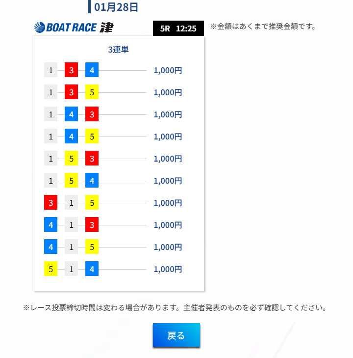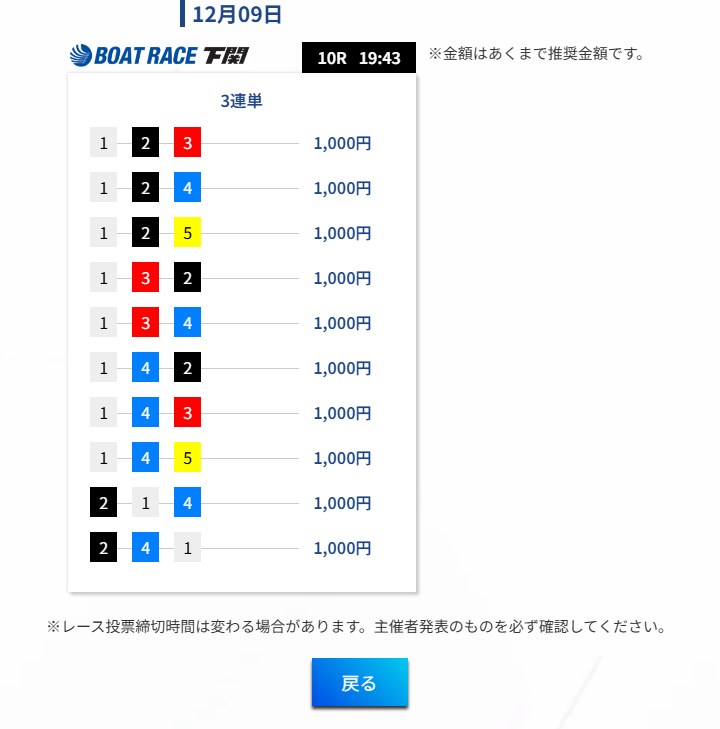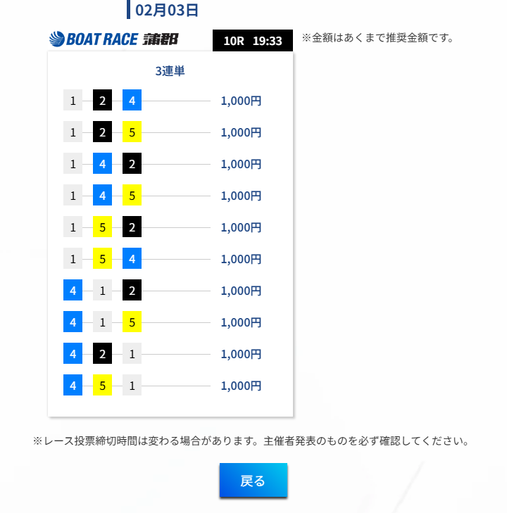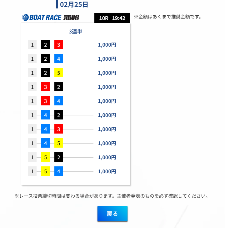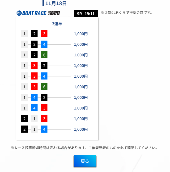 - 「UPBOAT(アップボート)」の無料予想は各買い目に金額を割り当て