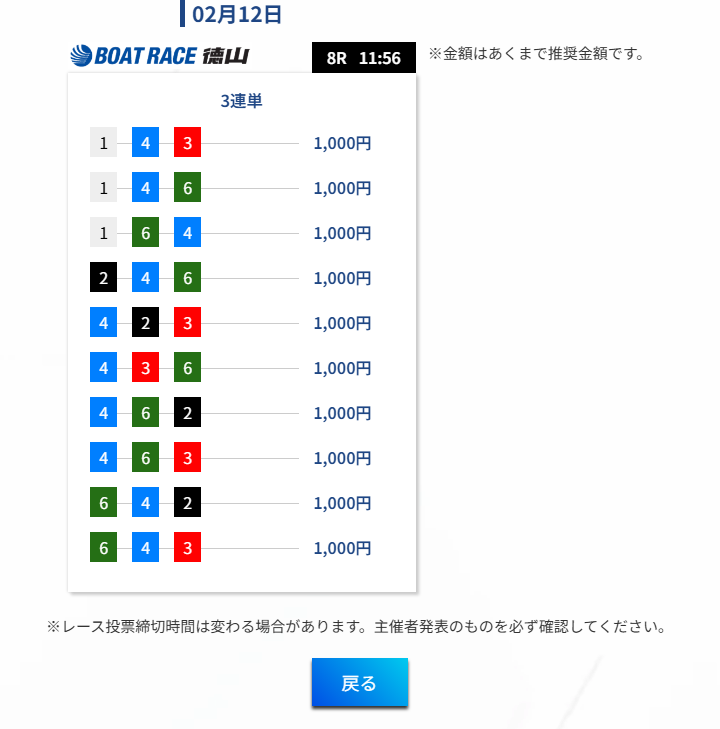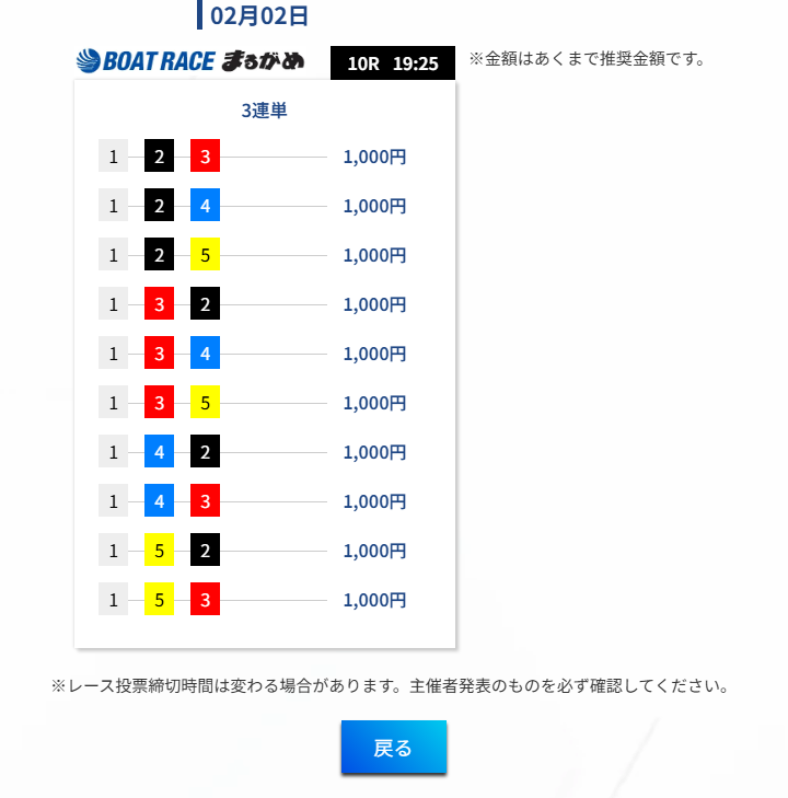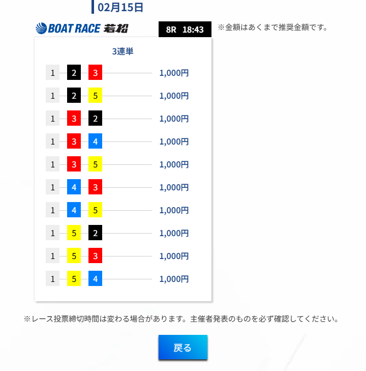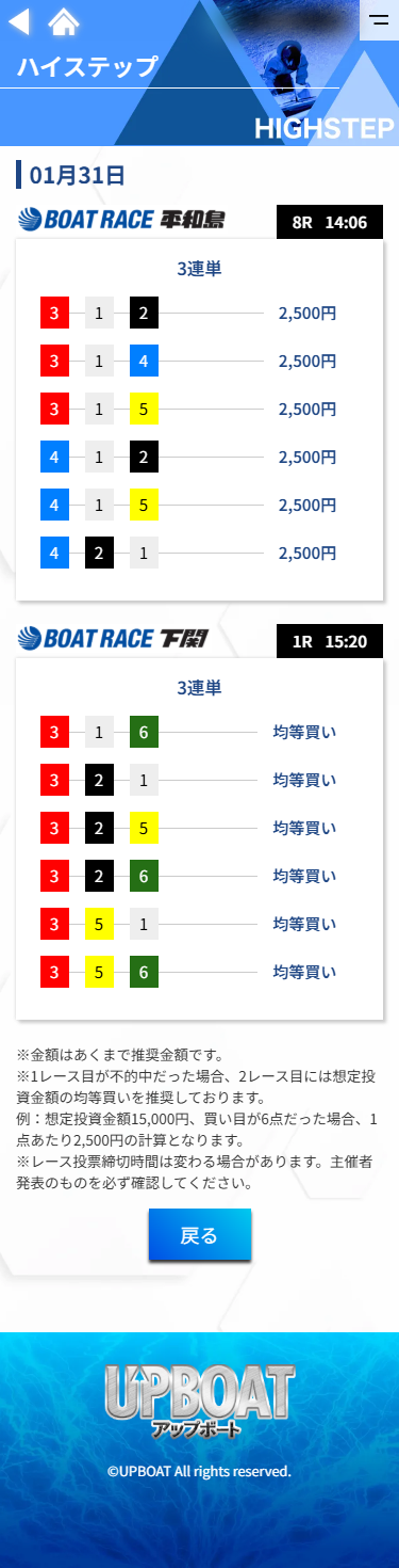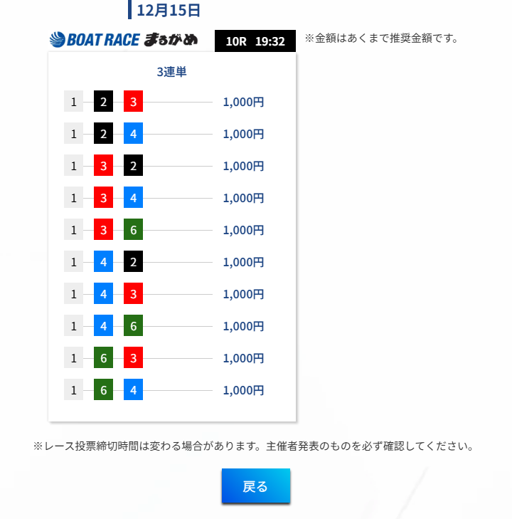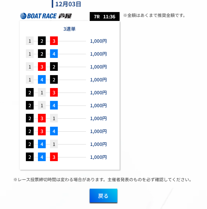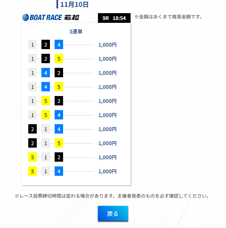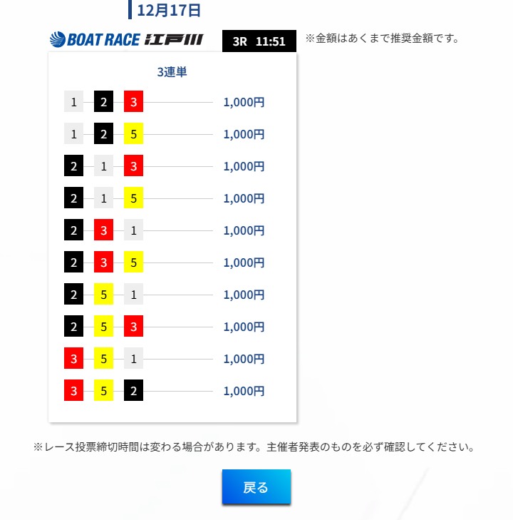 - 「UPBOAT(アップボート)」の無料予想は各買い目に金額を割り当て