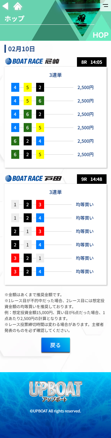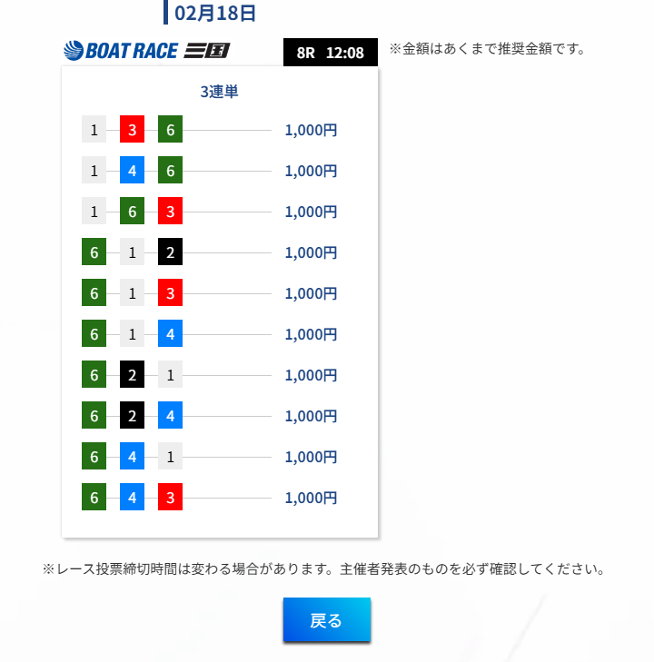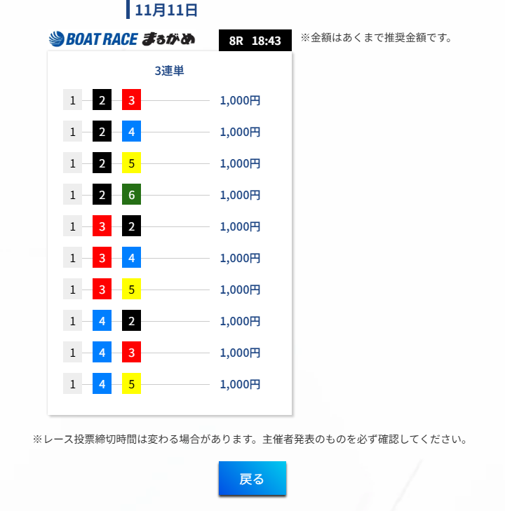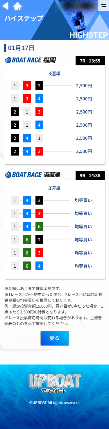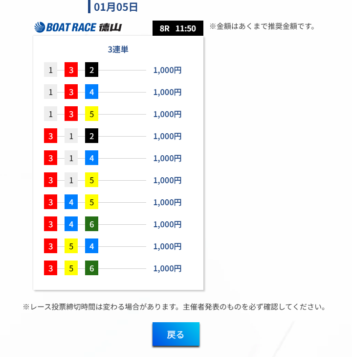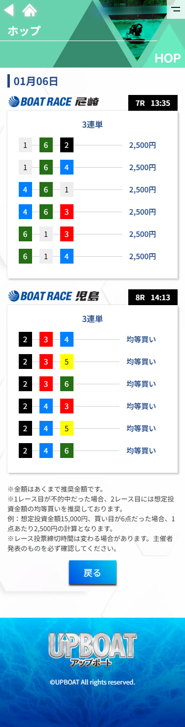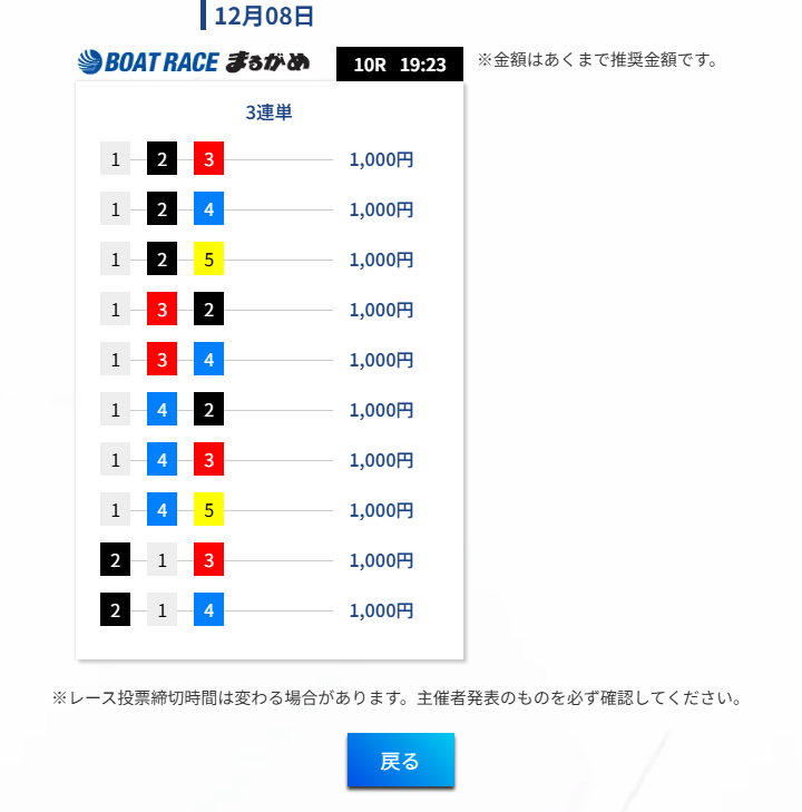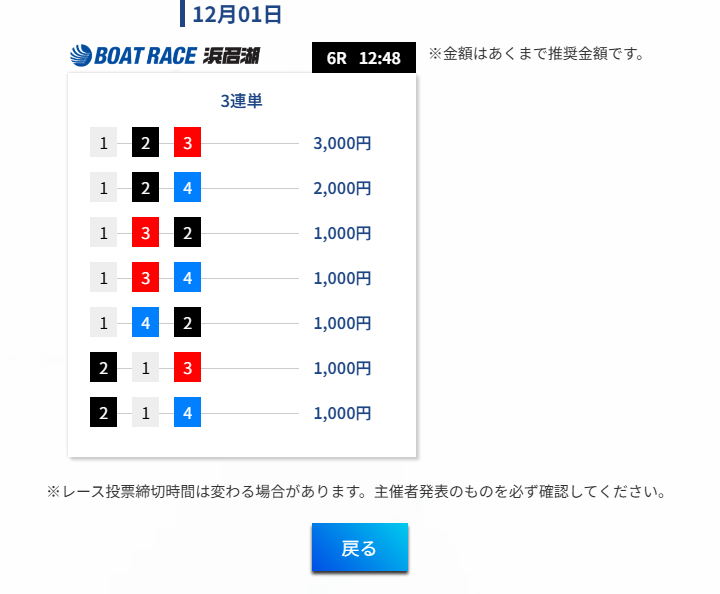 - 「UPBOAT(アップボート)」の無料予想は各買い目に金額を割り当て