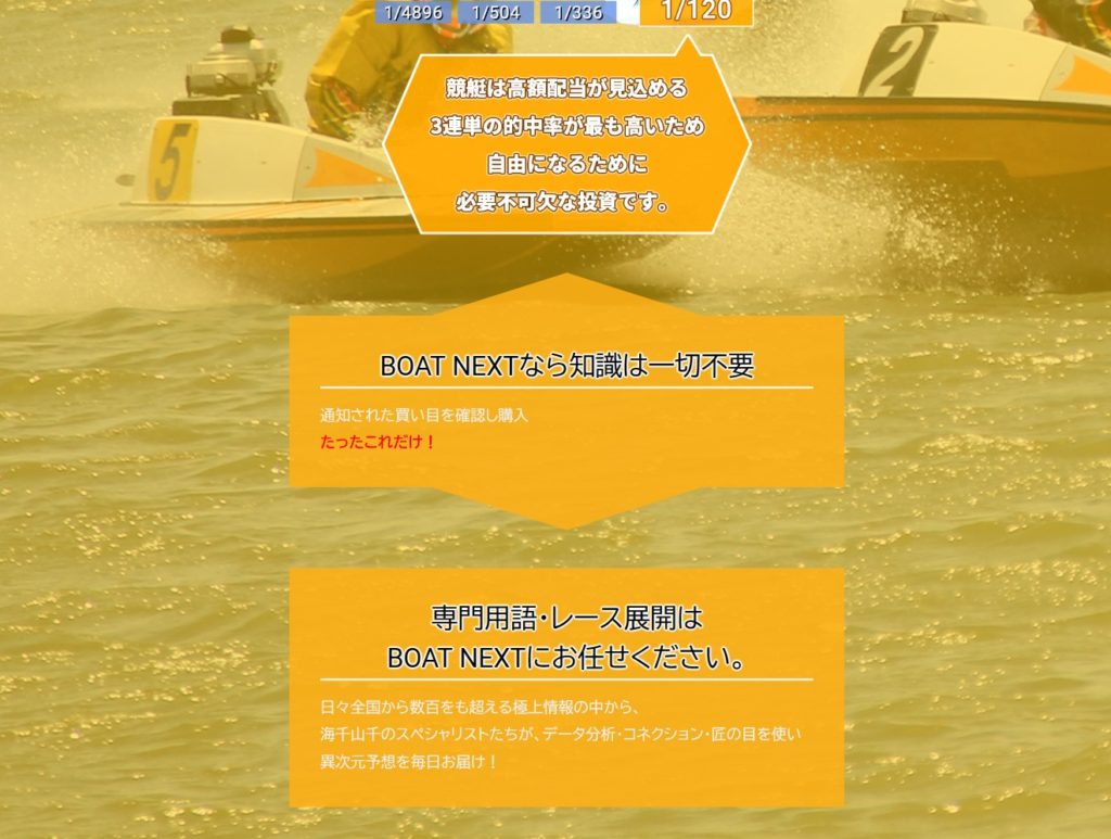 ボートネクストでは、登録前のランディングページで以下のような事がアピールされていました。