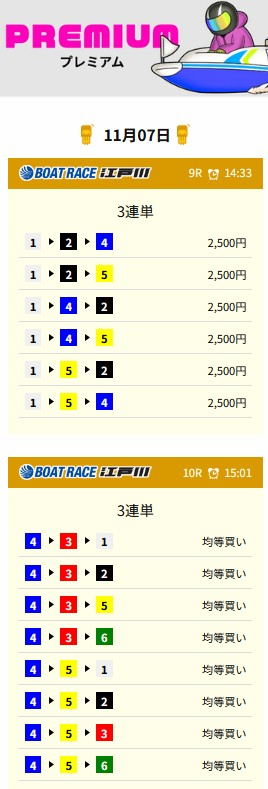 競艇タッグ高額的中者の声続出!今人気急上昇中!波に乗るなら今しかない! 競艇王子掲示板などの口コミで高額的中者の声が秘かに増えている今注目のサイトです。🎯直近のナイス的中提供日 : 11/7プラン : プレミアムレース : 江戸川9R ➡ 江戸川10R結 果 : 125 ➡435配 当 : 24.3倍 ➡ 118.3倍払戻額 : 887,250円画 像 : 執事じいボートレースの基本を学びたい初心者、投資目的に利用を考えている人に最適な競艇予想サイトです。検証結果競艇タッグを見る