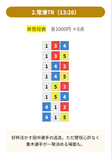 競馬のサイト何個か登録してたけど買い目が本当に多くて資金続かなくてすぐやめてしまった。ここは点数絞ってるのにそれなりに的中も出来て最高ですね。自分にはボートのほうが合ってるのかも。