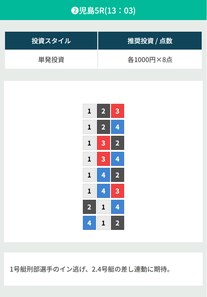 | 2026/03/30 | ![]() | 児島7R | 134 | 7.7倍 | 96% |