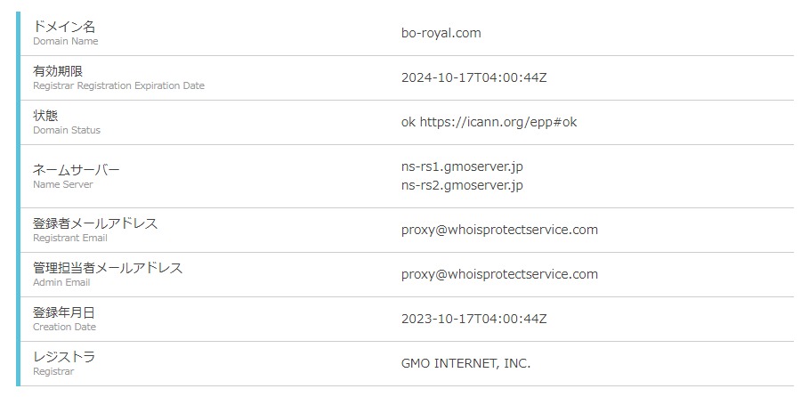 競艇王子ドメインの「bo-royal.com」が取得されたのは、2023年10月17日。最近作成されたばかりのサイトということがわかります。
