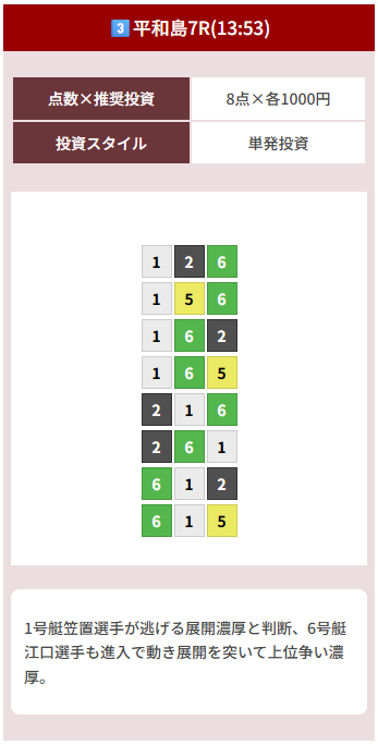 | 2026/04/07 | ![]() | 平和島7R | 142 | 14.8倍 | 185% |