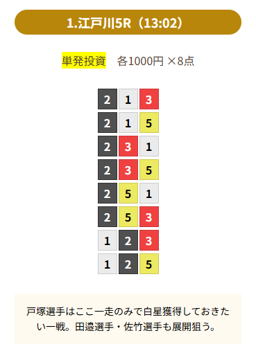 ④佐藤選手を軸とした予想内容となっています。