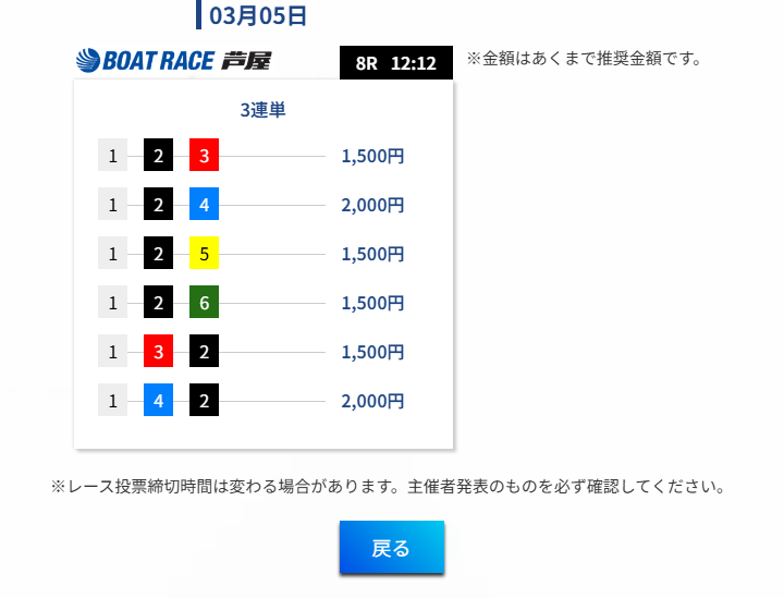 - 「UPBOAT(アップボート)」の無料予想は各買い目に金額を割り当て